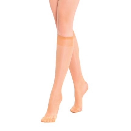 İnce, parlak, burnu dayanıklı ten rengi dizaltı çorabı.